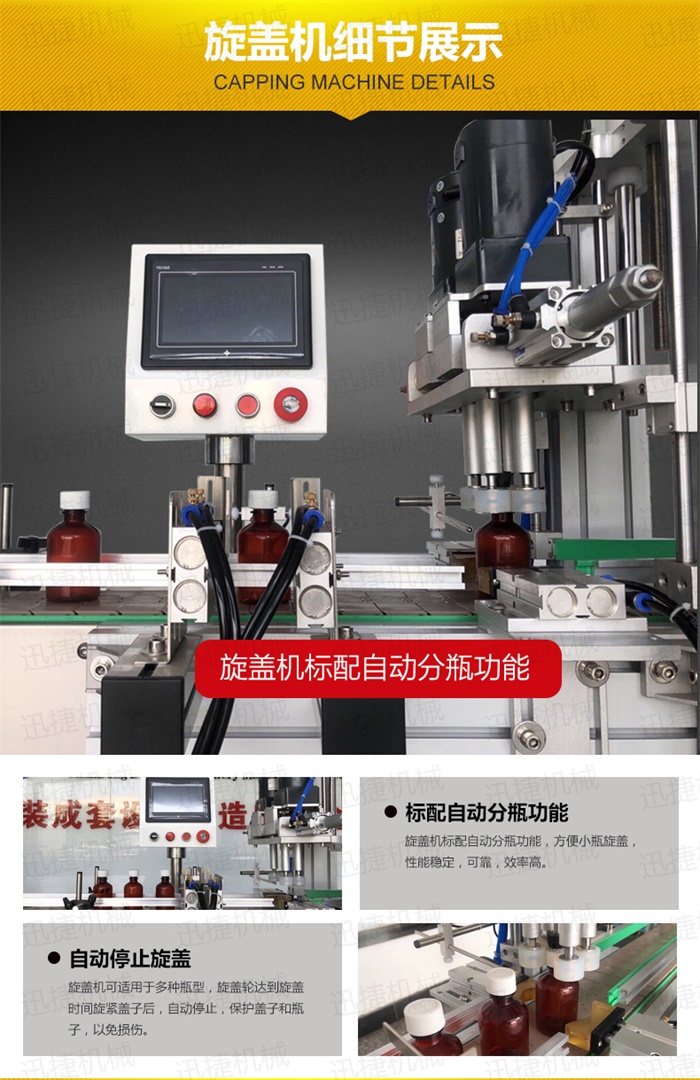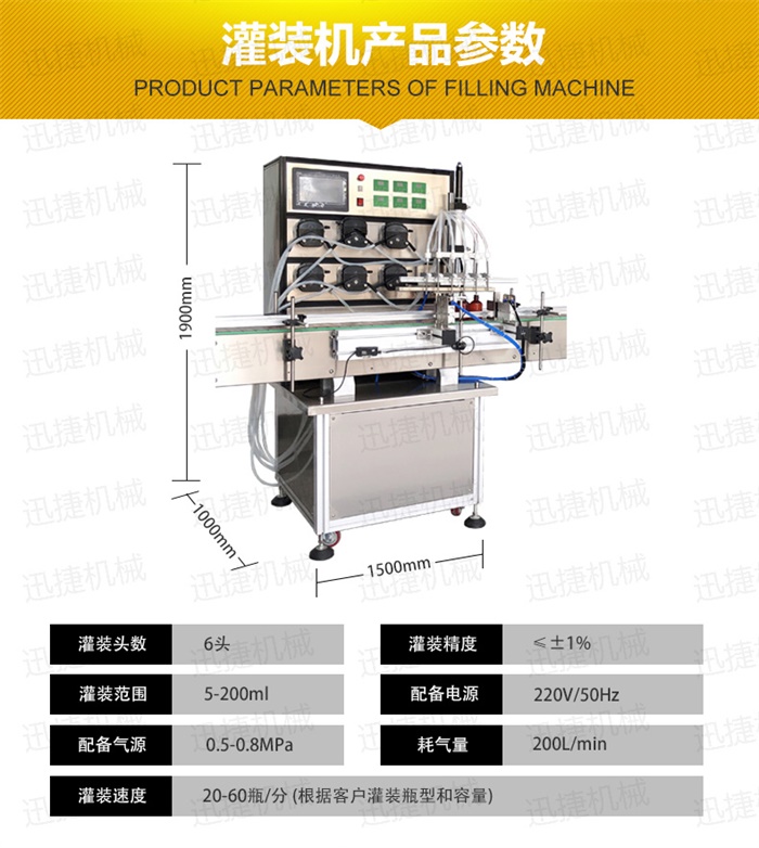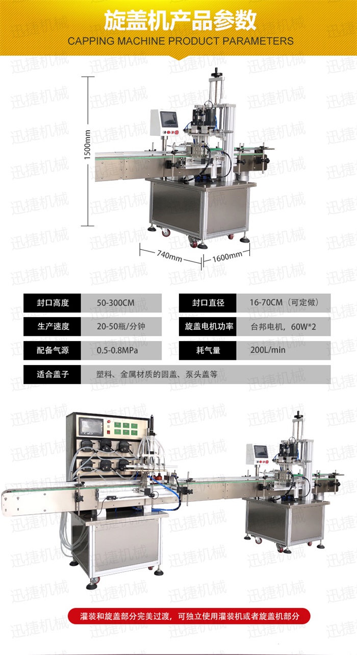特 點:定量灌裝,和瓶蓋旋蓋,在一臺機器上完成。具有占地空間小,自動化程度高特點
