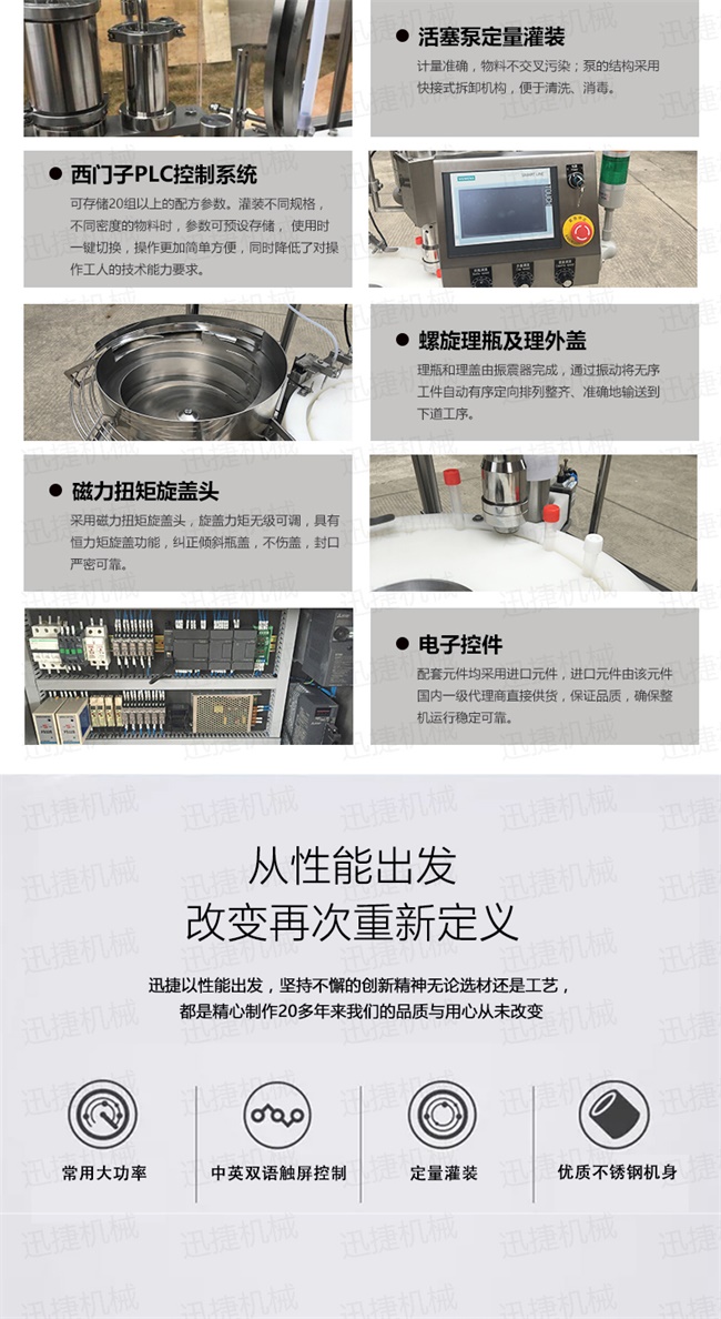 6、采用磁力扭矩旋蓋頭,旋蓋力矩?zé)o級可調(diào),具有恒力矩旋蓋功能,糾正傾斜瓶蓋,不傷蓋,封口嚴密可靠;
