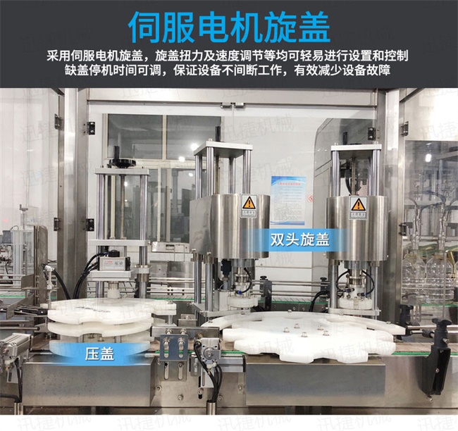 該枇杷膏灌裝機(jī)生產(chǎn)線-上蓋機(jī)結(jié)合用戶使用的情況,摒棄了傳統(tǒng)轉(zhuǎn)盤式真空旋蓋機(jī)的弊端,研制開發(fā)的新型設(shè)備,設(shè)備自動(dòng)檢測(cè)到設(shè)定數(shù)量的瓶子、蓋子進(jìn)入到真空旋蓋機(jī)內(nèi),旋蓋機(jī)彩色顯示屏?xí)?shí)時(shí)顯現(xiàn)旋蓋狀況,整機(jī)多點(diǎn)檢測(cè),當(dāng)進(jìn)口無瓶無蓋、出口堵塞、定位不準(zhǔn)、瓶身傾倒均自動(dòng)停機(jī)。單個(gè)旋蓋頭達(dá)到的真空度都可以單獨(dú)顯示,單獨(dú)調(diào)整。合格率達(dá)到100%!
