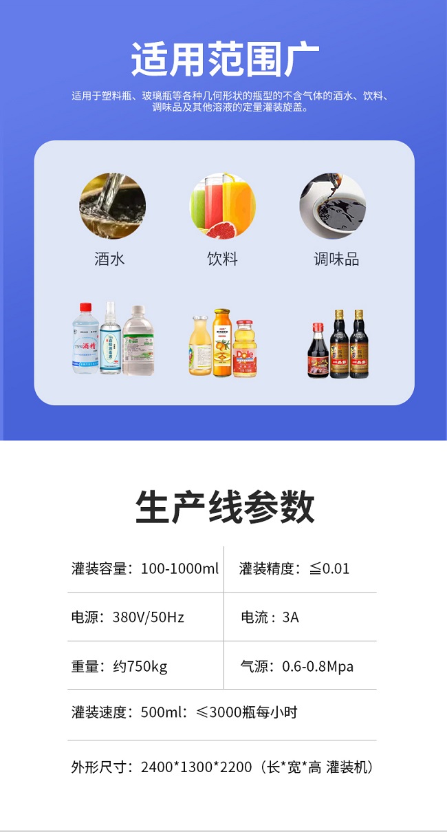 本機適用于多種材質,多種幾何形狀的容器,如塑料片、玻璃瓶、金屬瓶等;在需要更換瓶或蓋的時候,只要調整部分零件的位置即可,無需更換任何配件;在旋蓋過程中可以做到無瓶不下蓋。理蓋器、輸送機、旋蓋機、夾瓶皮帶速度可分別變頻調速,適應在規(guī)定范圍內的各類規(guī)格的旋蓋。(附:特殊規(guī)格定制即可)