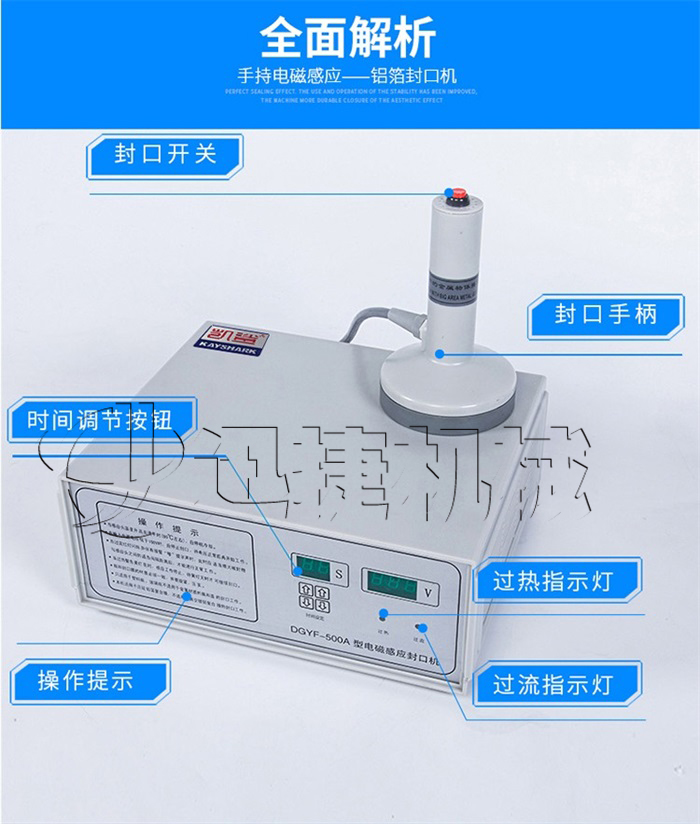 該該封口機為手持式鋁箔封口機,是一種便攜式電磁感應加熱封口設備,專為制藥、化工、農藥、食品、化妝品、輕工行業(yè)對容器進行鋁箔嚴密封口,封口材質使用廣泛。