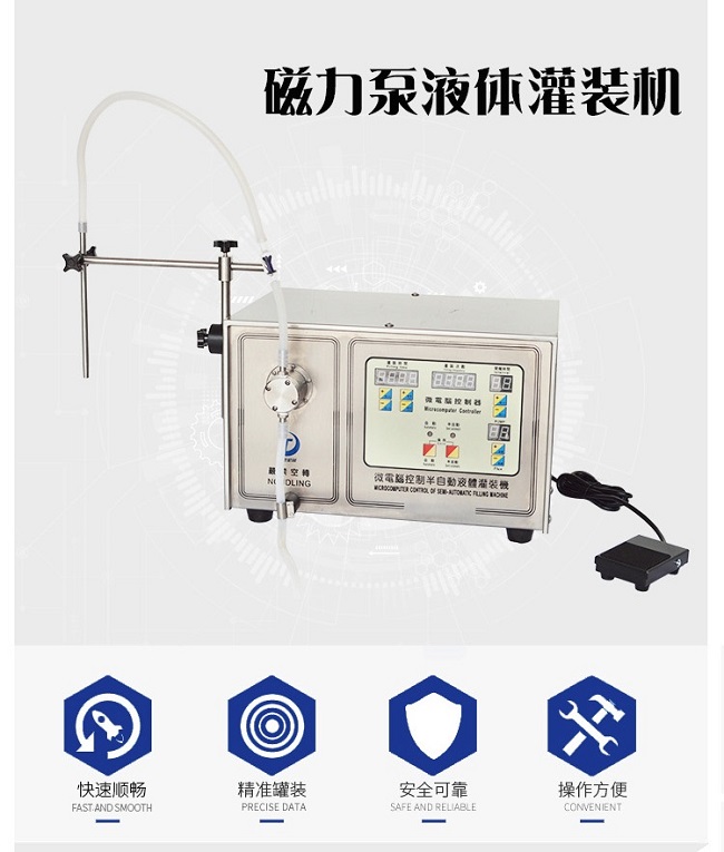 除此之外,液體灌裝機(jī)的上壓塊可以與泵頭本體分離,裝卡軟管方便,根據(jù)用戶(hù)需要,可串接多個(gè)泵頭,外形美觀(guān)、考究,結(jié)構(gòu)緊湊、流量寬泛。方便OEM方式配套應(yīng)用。具有定時(shí)功能,可實(shí)現(xiàn)半自動(dòng)分配、灌裝具有半電流鎖定功能。這樣的灌裝機(jī)滿(mǎn)足很多生產(chǎn)需要,現(xiàn)在以及未來(lái)迅捷機(jī)械還會(huì)研發(fā)出更多的灌裝機(jī)設(shè)備,讓我們來(lái)期待吧!